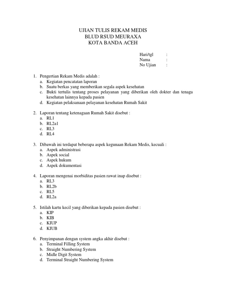 Soal Ujian Tulis Rekam Medis Pdf